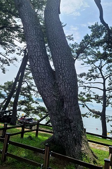 천사대교를 지나 암태도에 들어서자 눈에 띄는 게 기동삼거리 벽화였습니다. 담장 안의 동백나무와 벽화의 미소 짓는 노부부 얼굴이 조화를 이루어 독특한 분위기를 자아내는데 여기서 사진을 찍는 사람들이 많았습니다. 좀 더 차로 이동하여 은암대교를 지나자 목적지인 자은도가 나왔는데 이곳은 백길해변, 분계해변과 여인송 그리고 무한의 다리가 유명하다고 했습니다. 백길해변은 고운 모래사장이 800미터나 펼쳐져 있는 아름다운 곳으로 자은도에서 규모가 가장 큰 곳이며, 분개해변은 규모는 작지만 해송이 바다와 어우러져 풍경이 좋은 곳으로 여기에는 여인송이 있는데 이 여인송에는 애틋한 부부의 사랑에 얽힌 전설이 있습니다.