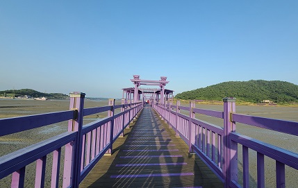 퍼플교는 처음부터 보라색으로 만들어진 것은 아니고, 2007년 목교가 만들어진 후 특색 있는 섬으로 만들 수 있을까 고민하다가 섬에 왕도라지꽃등 보라색꽃이 많은 데서 착안하여, 보라색의 섬으로 특성화하겠다는 제안으로 2016년 전라남도의 가고 싶은 섬 사업에 응모하여 선정되었다고 하니 그렇게 역사가 길지는 않습니다. 신안의 1004 로고, 퍼플섬등 특색 있는 아이디어가 수많은 관광객들을 오게 하고, 지역 경제에도 큰 도움이 되는 계기가 된 것 같습니다.