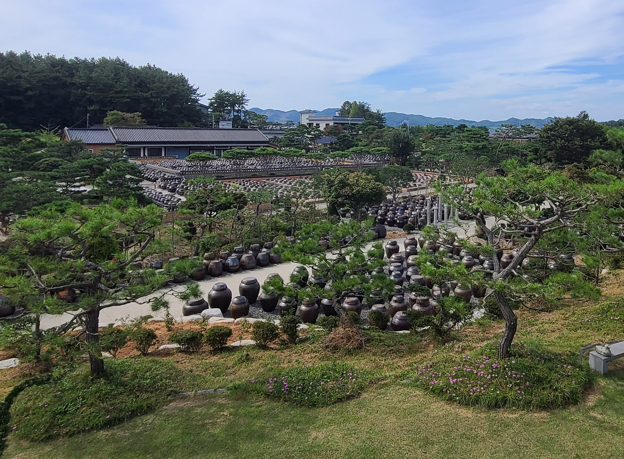 아가페정원에서 차로 10분이 걸리지 않는 곳에 위치한 고스락. 차량 80대 정도를 주차할 수 있는 넓은 주차장이 있어 쉽게 주차하였습니다. 고스락은 으뜸, 최고를 뜻하는 순수 우리말로 여기는 색다른 매력을 지닌 곳으로 3만여 평의 대지에 항아리 4천여 개로 꾸며진 정원으로 유기농 인증을 받아 우리나라 전통 발효식품등을 생산하는 기업체로 유기농 된장, 간장, 고추장, 청국장, 식초등이 있습니다.