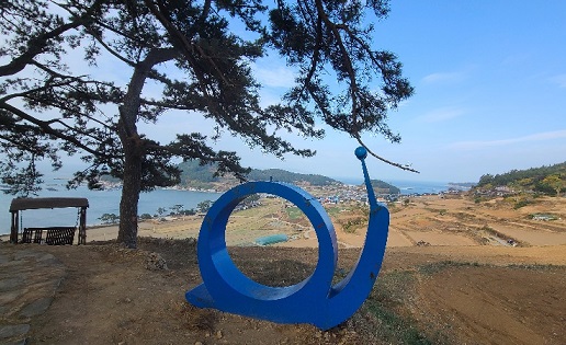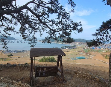 바람이 조금 불긴 했지만 멀리 보이는 푸른 바다와 오밀조밀한 해안 풍경들 그리고 산과 나무들의 풍경들이 정말 아름답고 평온해 보였습니다. 군데군데 설치된 서편제와 드라마 봄의 왈츠 관련 조형물들과 느림을 상징하는 듯한 달팽이, 그네등의 조형물이 주변의 멋진 풍경과 어우러진 모습에 한참을 그 자리에 멈추게 했습니다.