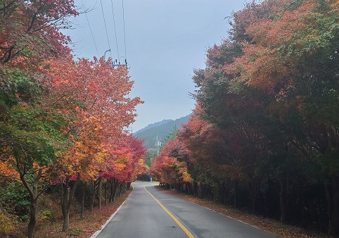 이곳을 가는 길은 차가 서로 교행 하기도 어려워 조금은 긴장했던 곳이기도 합니다. 이후 도로 양옆으로 쭈욱 늘어서 있는 단풍나무길을 지나갔는데 늦가을이라 그런지 단풍도 정말 아름다웠고 그 규모도 상당해서 잠시 차를 세우고 다양한 포즈로 사진도 찍었습니다.