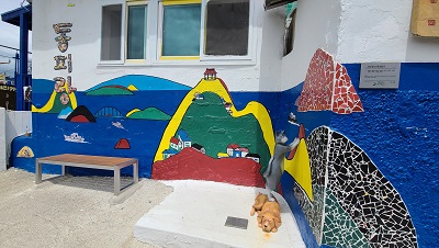 다음은 동피랑 벽화마을로 동피랑은 동쪽벼랑을 뜻하는 말로 이곳은 중앙시장 뒤편 언덕에 위치해 있는데 이곳은 이순신장군이 설치한 동포루가 있는 곳으로 통영은 낙후된 이 지역을 철거하고 공원으로 조성하려 했는데 우여곡절 끝에 벽화마을로 재탄생하게 된 곳으로 벽면은 온통 만화와 일러스트가 그려져 있으며, 전망도 뛰어나 강구항을 비롯한 통영시 전체가 눈에 들어옵니다.